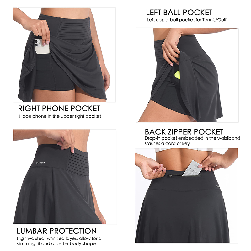 Плиссированные теннисные юбки с 4 карманами--- Спортивные юбки для женщин с 4 карманами освобождают руки во время тренировок. Плиссированные юбки для женщин с двумя большими боковыми карманами помогают хранить телефоны и теннисный/гольф мяч. Скрытый маленький карман на талии позволит вам хранить ключи, наличные или другие мелочи. Задний карман на молнии отлично подходит для хранения предметов первой необходимости, таких как карты, ключи и т.д.